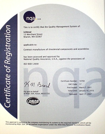 Industrial Metal Products Co., Inc. 15 Merchant St. � Sharon, MA 02067Tel: (781) 327.1000 � Fax: (781) 784-6075E-Mail: info@inmetal.com